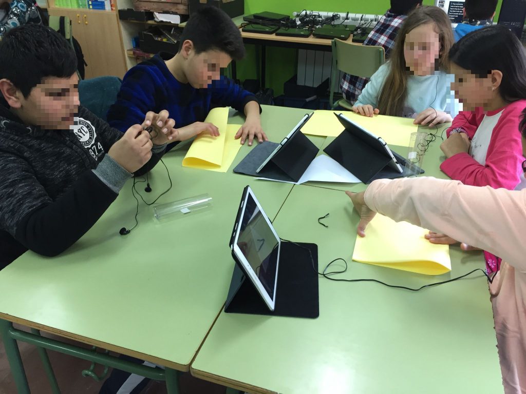 L’alumnat escrivia el seu text en anglès i després premia la tecla micròfon. Cada alumne amb la seva tauleta i uns auriculars anava escoltat l’audio en anglès que posteriorment hauria de reproduir el dia de la presentació. L’escoltaven tantes vegades com creien necessari i després amb una app de gravacions de veu es gravaven i s’escoltaven per valorar en quin punt estaven.