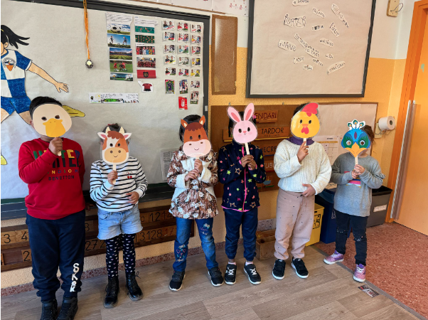 Aquesta imatge fa referència a l’activitat número 7 “dels animals”. Per dinamitzar l’activitat es fa ús d’algunes màscares d’animals.