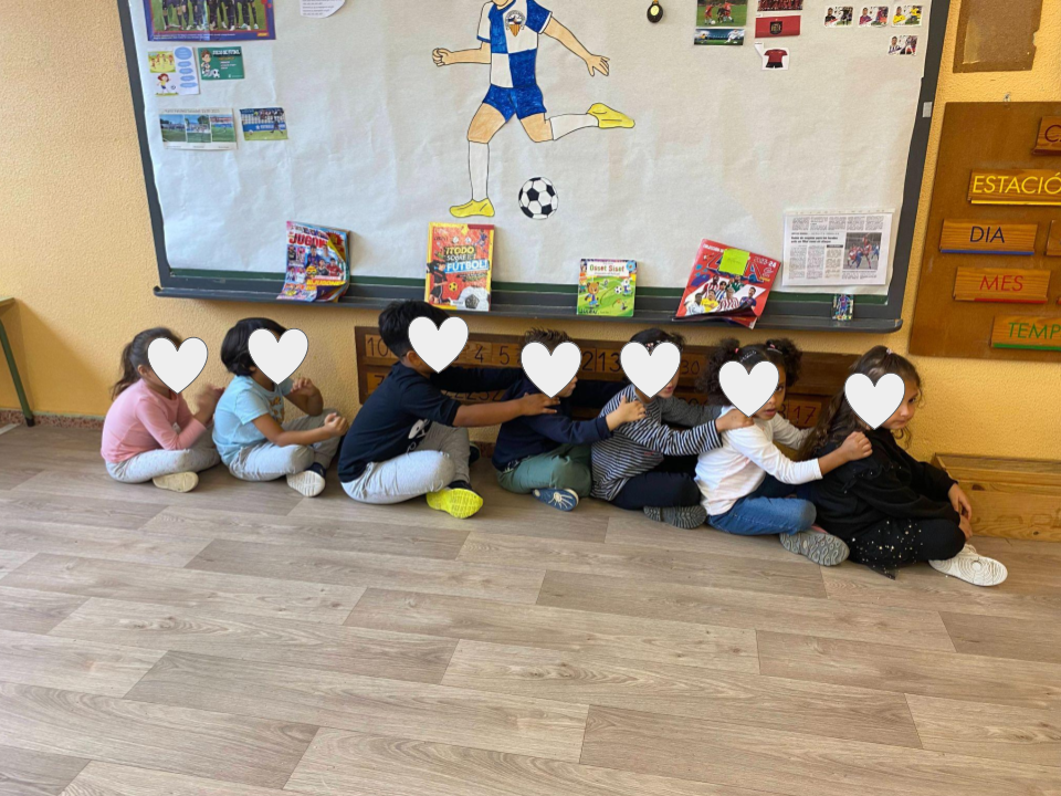 Un grup d’infants està realitzant una de les activitats mentre estableix contacte amb els seus companys i companyes de classe.