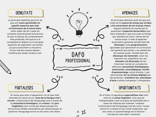 Aquest article presenta l’anàlisi DAFO professional en el qual es reflexiona sobre les debilitats i les amenaces amb les que em trobo en el dia a dia en…
