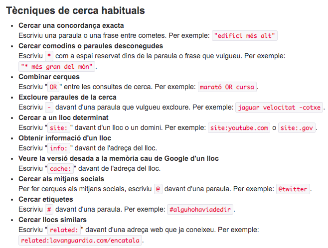 En la nostra feina, sovint cal que fer cerques d’informació i per això és important saber utilitzar les eines de cerca per poder accedir a la informació que ens interessa de manera immediata i eficaç. Quan es realitza una cerca en un operador de cerca com podria ser el Google és important tenir en compte dos aspectes: