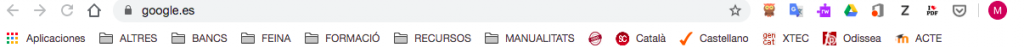 Pel que fa al sistema d’emmagatzematge i classificació dels recursos utilitzo dues tècniques. Per una banda, utilitzo el navegador Chrome que em permet personalització dels marcadors amb un sistema de classificació que jo mateixa gestiono i etiqueto segons les meves necessitats. Tinc accés directe als recursos que més utilitzo i carpetes per anar afegint els recursos o pàgines web amb informació que considero interessant per la meva tasca docent. També em permet afegir extensions que són molt útils per la meva tasca diària i per als meus alumnes com serien: guardar en Drive, Read&write, Traductor, Zoom, Helpbird o Pocket.
