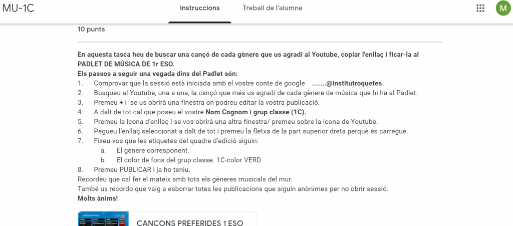 En la primera comunicació s’han respectat totalment la protecció de dades, la seguretat física i psicològica de l’alumnat i el benestar digital, ja que hem utilitzat l’Espai Virtual d’Aprenentatge per fer la comunicació. Aquest ens serveix per a comunicar-nos tant sincrònicament com asincrònicament.
