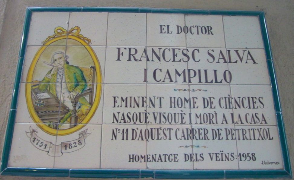 El metge barceloní Salvà i Campillo (1751-1828) era un il·lustrat que estava al corrent dels avenços científics i tècnics del seu temps. En l’exercici de la medicina va contribuir a estudiar els resultats de la vacunació contra la verola, que li van valer un premi de la Société Royale de Médecine, de París. També va ser professor de l’Acadèmia Medico-pràctica de Barcelona (avui Reial Acadèmia de Medicina de Catalunya), que ell va contribuir a crear.