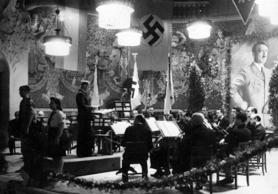 El feixisme i el nazisme es van fer presents fins i tot en el calendari. La colònia alemanya celebrava les grans dates del règim alemany, però aquestes tenien també el seu impacte a tota la ciutat. Eren jornades com el 20 d’abril (l’aniversari d’Adolf Hitler), el 30 de gener (dia de la seva presa del poder el 1933), o el 3 d’octubre (Dia d’acció de gràcies a Déu per la collita). Algunes d’aquestes celebracions van tenir com a gran escenari el Palau de la Música.