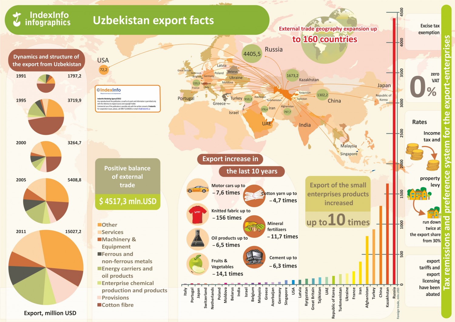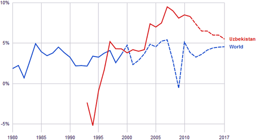 Hasta 2016 y desde los años 80, cuando Uzbekistán era otra república socialista soviética de la Unión, el país estuvo gobernado con mano de hierro por Islam Karimov, quien siguió a la perfección la fórmula soviética de una economía planificada. Su relevo, el ingeniero Shavkat Mirziyoyev, a pesar de haber prometido continuar con la fórmula de Karimov, muestra cierta voluntad de reformar el sistema, aunque aún no se hayan dado grandes pasos hacia ese fin.