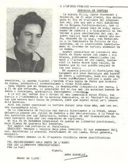 Carta d’Anna Rosselló, mare de la Carme Travesset, escrita el gener de 1976 després de la detenció de la seva filla. Carme Travesset, ‘la Petita’, fou militant del PSAN-Provisional i de les Joventuts Revolucionàries Catalanes (JRC) als anys 70.