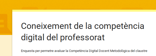Com a tasca del nou curs de coordinadors TAC novells que realitzo, adjunto una enquesta per tal de conèixer la competència digital de professorat del centre.