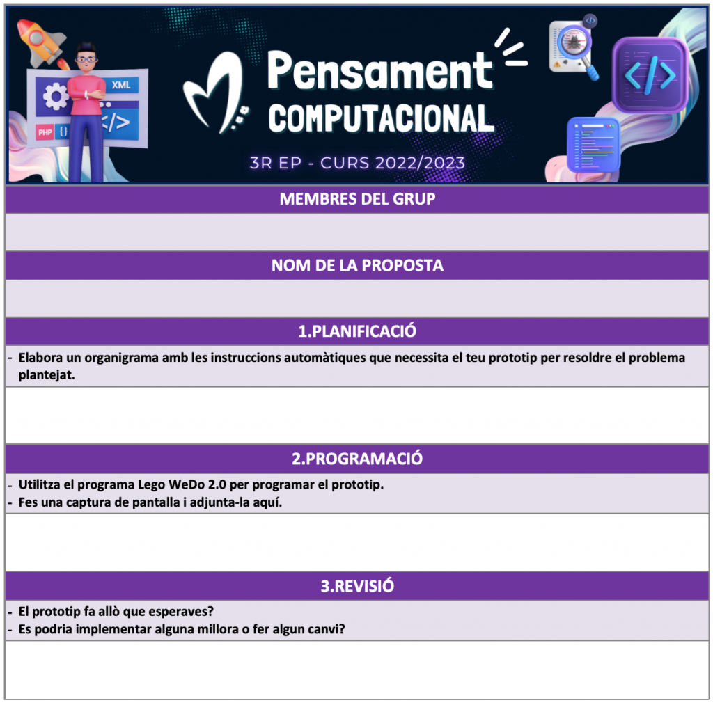 Una vegada han aconseguit fer-ho i ha un últim apartat de revisió i propostes de millora. En aquest últim punt han de fer canvis perquè el prototip pugui dur a terme accions que abans no feia.