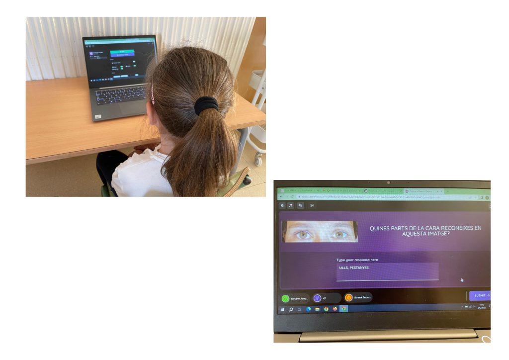 M’he centrat en avaluar els coneixements adquirits sobre les parts de la cara, i ho he volgut registrar amb el Quizziz perquè et permet posar imatges i, si ets SUPER, pots també enregistrar un àudio que llegeixi la pregunta a l’alumnat (molt necessari a l’educació infantil en general, i també per a l’alumnat que necessiti aquesta ajuda auditiva).