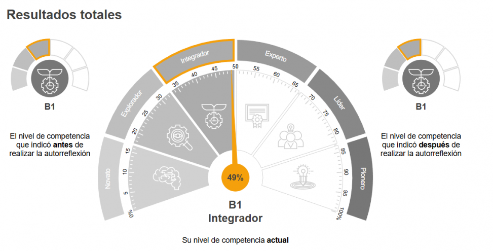 El selfie for teachers ens permet com a professionals de l’ensenyament assabentar-nos del nostre nivell de competència digital. Després de realitzar el test, és fàcil observar quines àrees em de millorar. En el meu cas, he vist que he de millorar les estratègies a l’aula enfocades en l’empoderament de l’alumnat i que el meu nivell de competència digital és de B1 aproximadament. Encara que implemente TIC a l’aula he de seguir adquirint competències digitals per poder anar un pas més enllà.