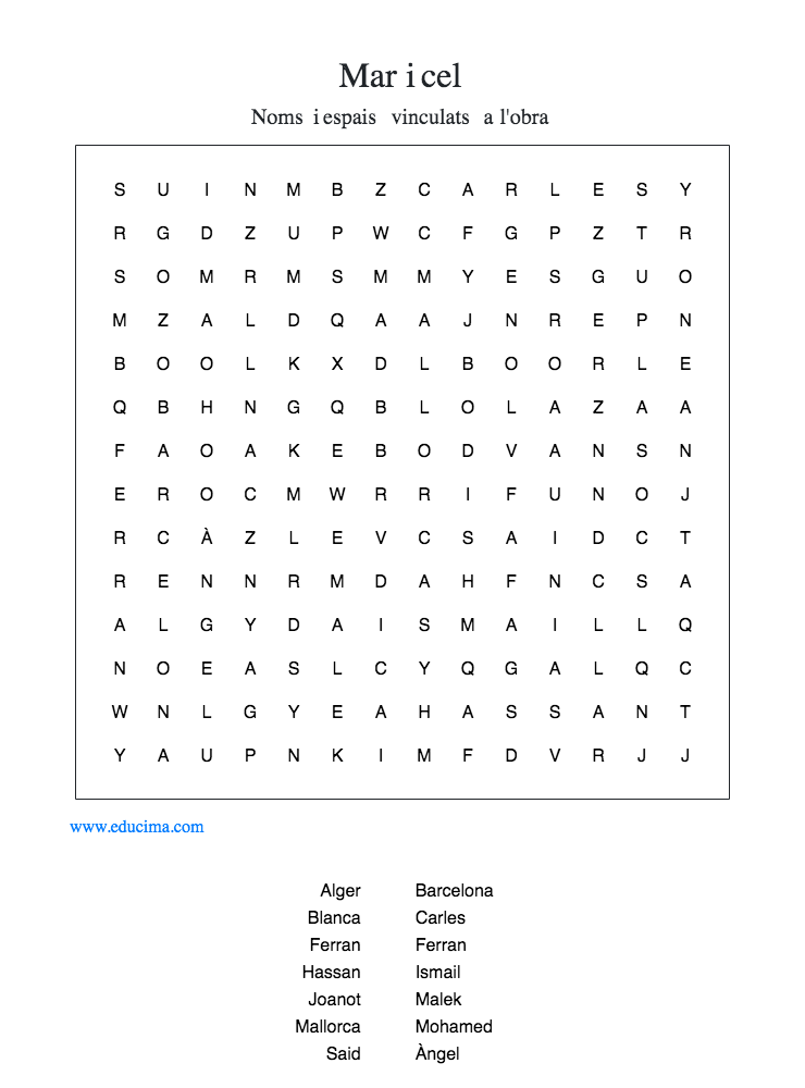 Les dues activitats que he plantejat, estan vinculades amb el llibre d’Àngel Guimerà, Mar i cel. La primera activitat consisteix a realitzar un Kahoot amb diferents preguntes de Vertader i Fals, vinculades a la lectura del llibre. La segona és una sopa de lletres, on s’ha de cercar els noms dels diferents personatges que apareixen a l’obra.