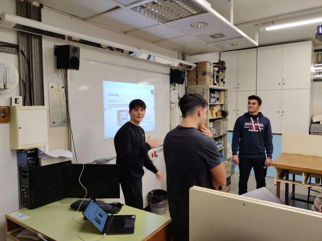 Presentació d’elements elèctrics on els alumnes expliquen a la resta de l’alumnat els diversos components elèctrics.