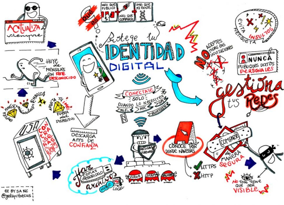 Imatge extreta del blog https://pleducacion.wordpress.com/2018/04/10/claves-para-proteger-tu-identidad-digital/ , del creador @gelapithecus