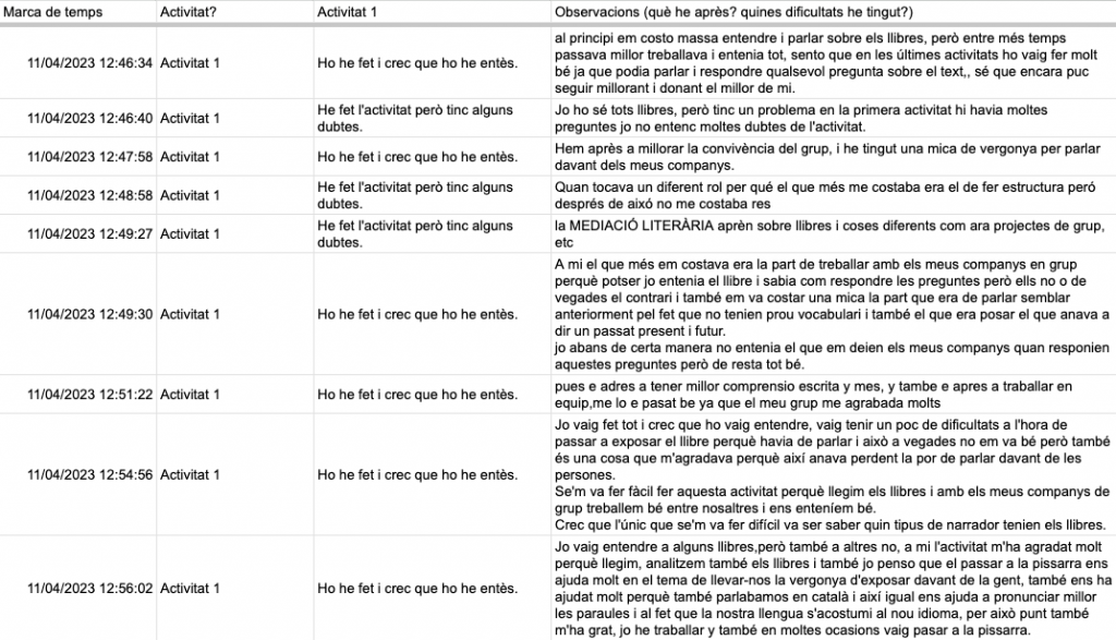 Comentaris alumnat Class-Mon a l’Aula d’Acollida de la Fase 1 de Mediació literària. Curs 22-23.