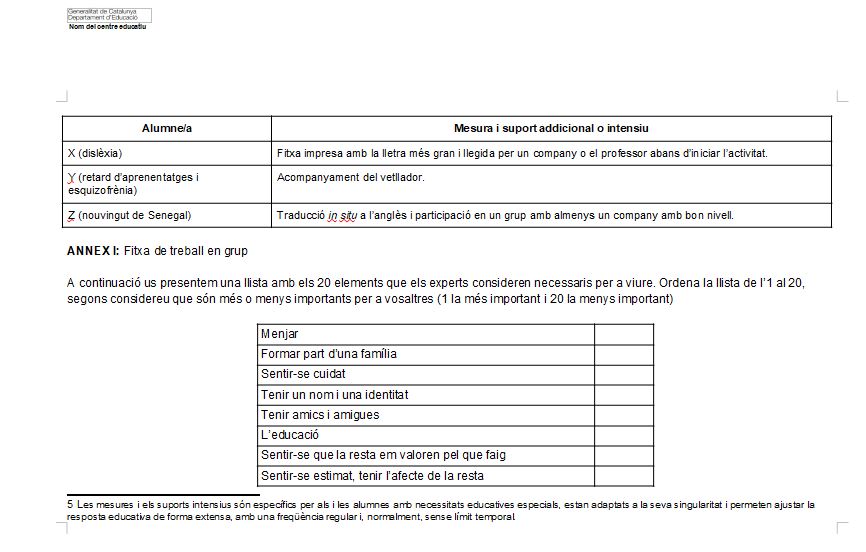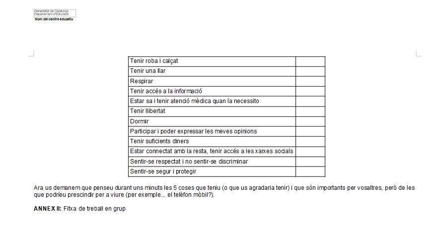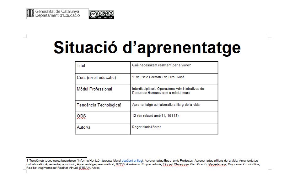La situació d’aprenentatge seleccionada és ”què necessitem realment per a viure?” seleccionada de la següent referència: