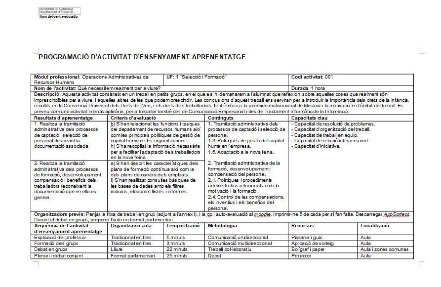 El mòdul professional del Cicle Formatiu de Grau Mitjà de Gestió Administrativa seleccionat per a proposar aquesta situació és MP01 Comunicació, i podrà ser compartit amb els altres dos mòduls que imparteixo: MP03 Operacions Administratives de Recursos Humans (en relació a la piràmide de necessitats de Maslow) i MP07 Tractament Informàtic de la Informació. És pel 1r curs.