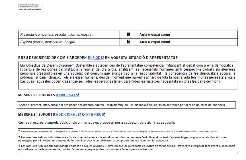 El (re)disseny de la situació d’aprenentatge integrant les Tecnologies d’Innovació i els Objectius de Desenvolupament Sostenible s’adjunta a continuació: