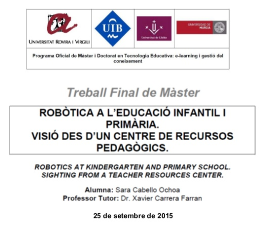 Robòtica a l’educació infantil i primària. Visió des d’un centre de recursos pedagògics (TFM)