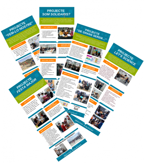 Projecte 1_FEM-LO NOSTRE Projecte 2_CICERONE Projecte 3_SOM SOLIDARIS Projecte 4_DE GRANS SEREM… Projecte 5_LET’S SCIENCE Projecte 6_FESTA MAJOR
