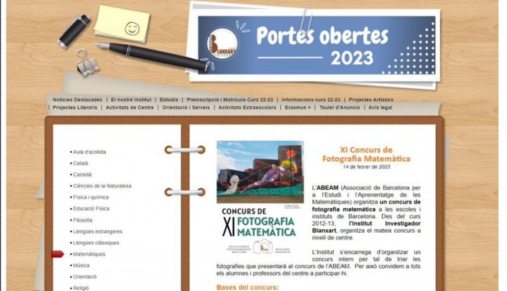 | 2. Una comunicació per a les famílies en col·laboració amb altre docent o agent educatiu (pot ser una comunicació per a totes les famílies o un grup de famílies). Página web: http://blanxart.net/activitats-de-centre/matem%C3%A0tiques/ |