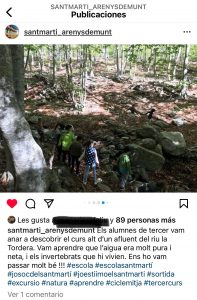 L’escola té obert un perfil a l’Instagram on es pengen tot tipus d’activitats que du a terme el centre. Les famílies dels alumnes, prèviament, han signat un document sobre drets d’imatge. Així doncs, en aquest exemple es documenta la sortida que va fer la classe de 3r de primària al Montseny aquesta última setmana d’octubre.